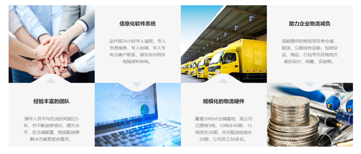 东莞市耀通物流有限公司是一家以物流为特色服务,致力于为客户提供供应链一体化服务的第三方物流企业。公司具有完善的内部组织机构和管理制度,公司秉承客户至上的服务宗旨,借助先进的物流服务理念和丰富的物流操作经验,为不同客户量身定做提供专业物流方案和优质、高效的物流服务;从而帮助客户降低成本,提升市场竞争力。