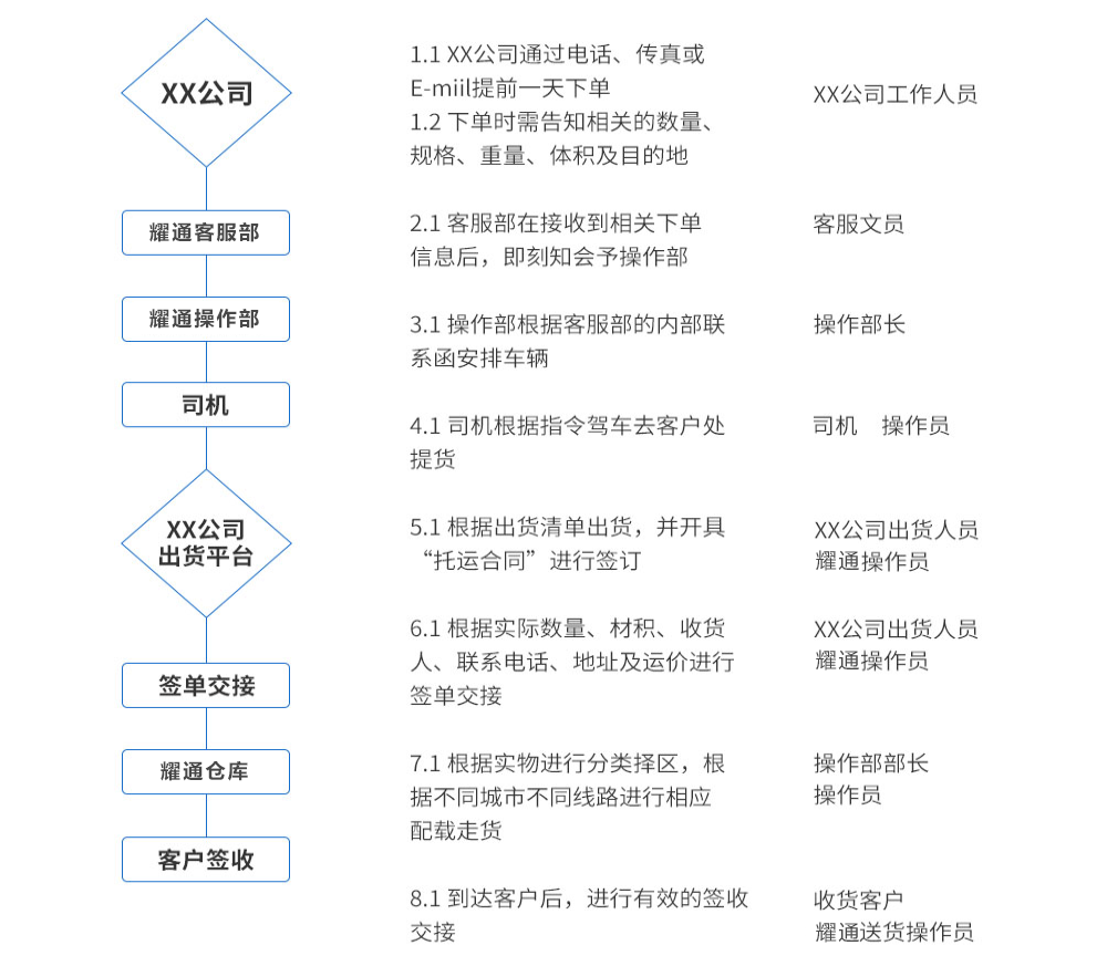 为满足公司业务需要,公司设有市场部、协调部、客户服务部、客户投诉热线等。公司管理严格,运作部24小时专人值班,专人负责接单,专人协调、专